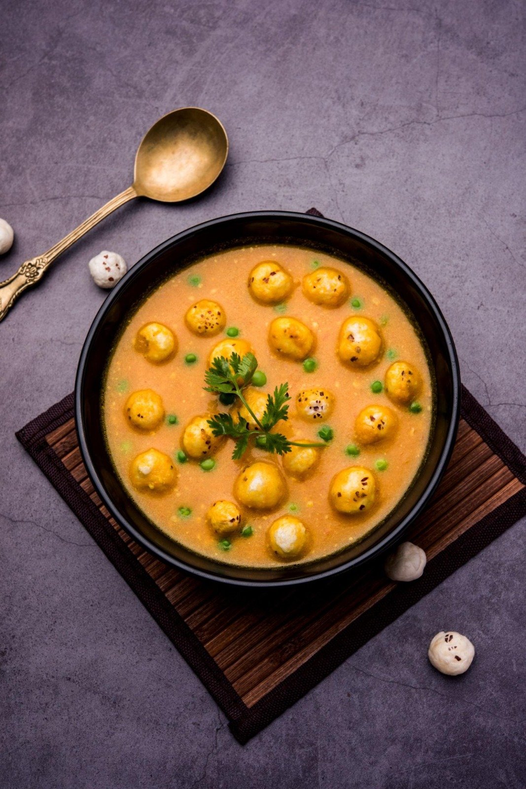 A rich, comforting curry of roasted makhana in creamy, aromatic gravy.